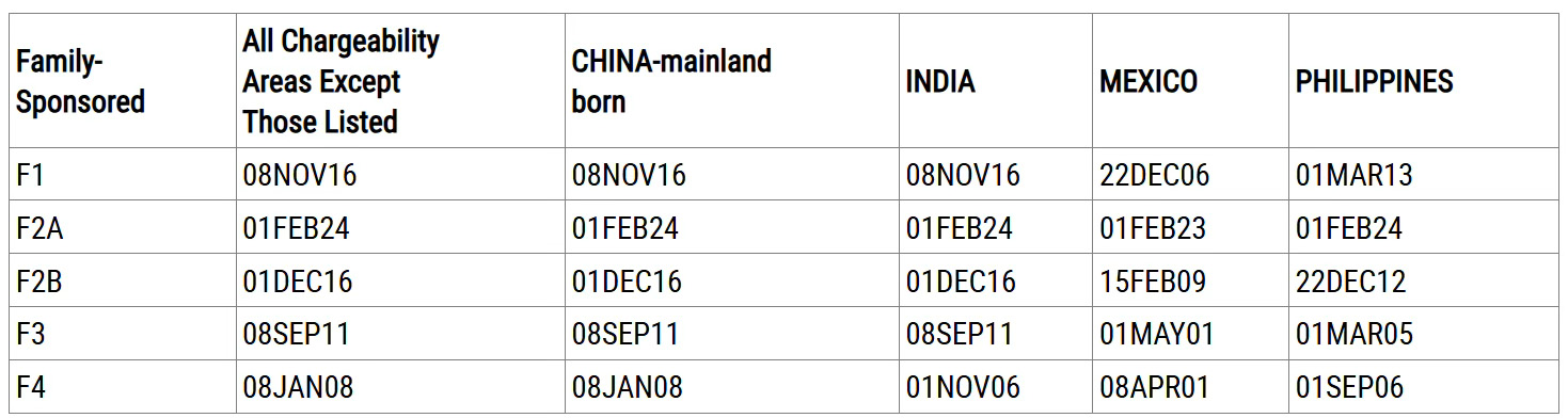2026年03月美國 親屬移民排期 | 表A (最終裁定日)