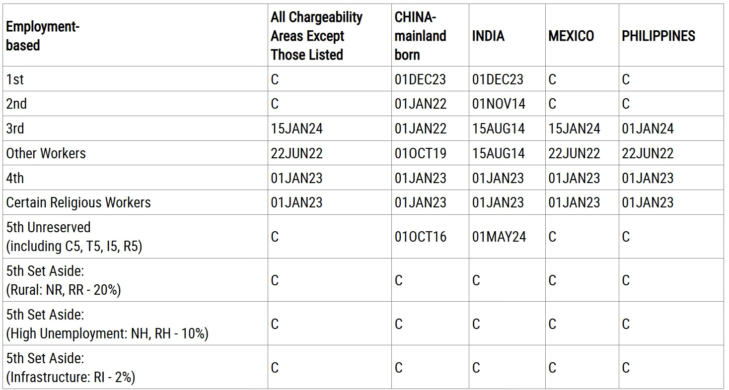 | EB-3 專業和熟練技術人員 | 2023年10月1日 | 2024年1月15日 | 前進106天 |